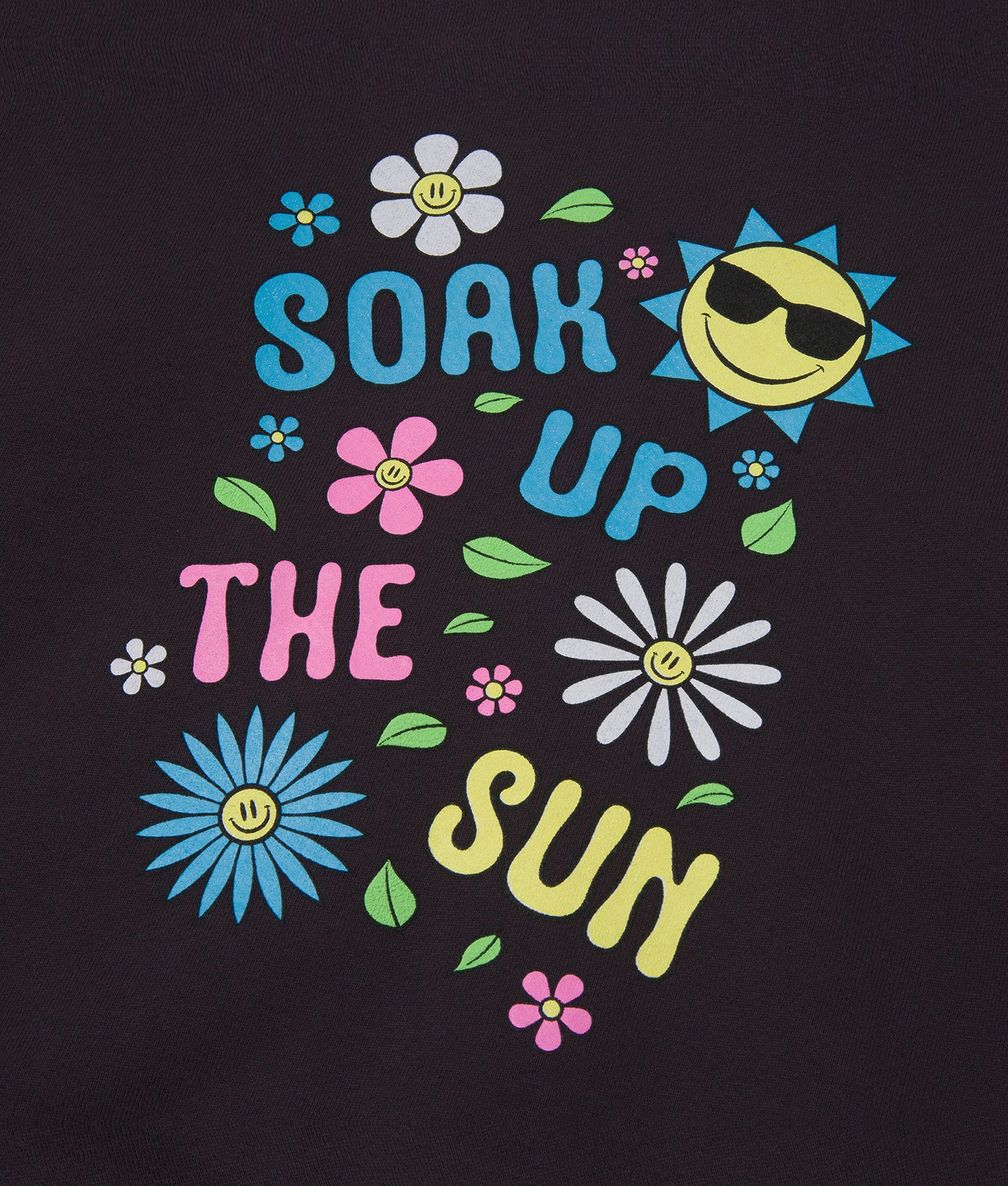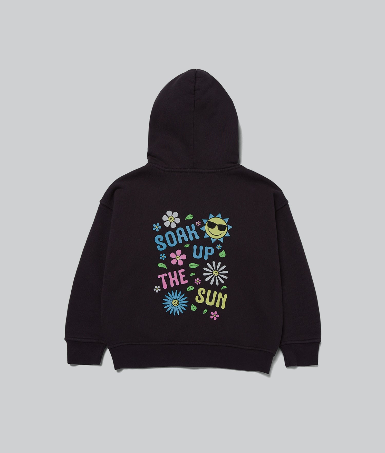 Introducing our vibrant and playful hoodie, featuring a delightful “soak up the sun” design. Inspired by the joyous spirit of nature, this full zip hoodie is perfect for the young adventurer who loves to be out enjoying nature.