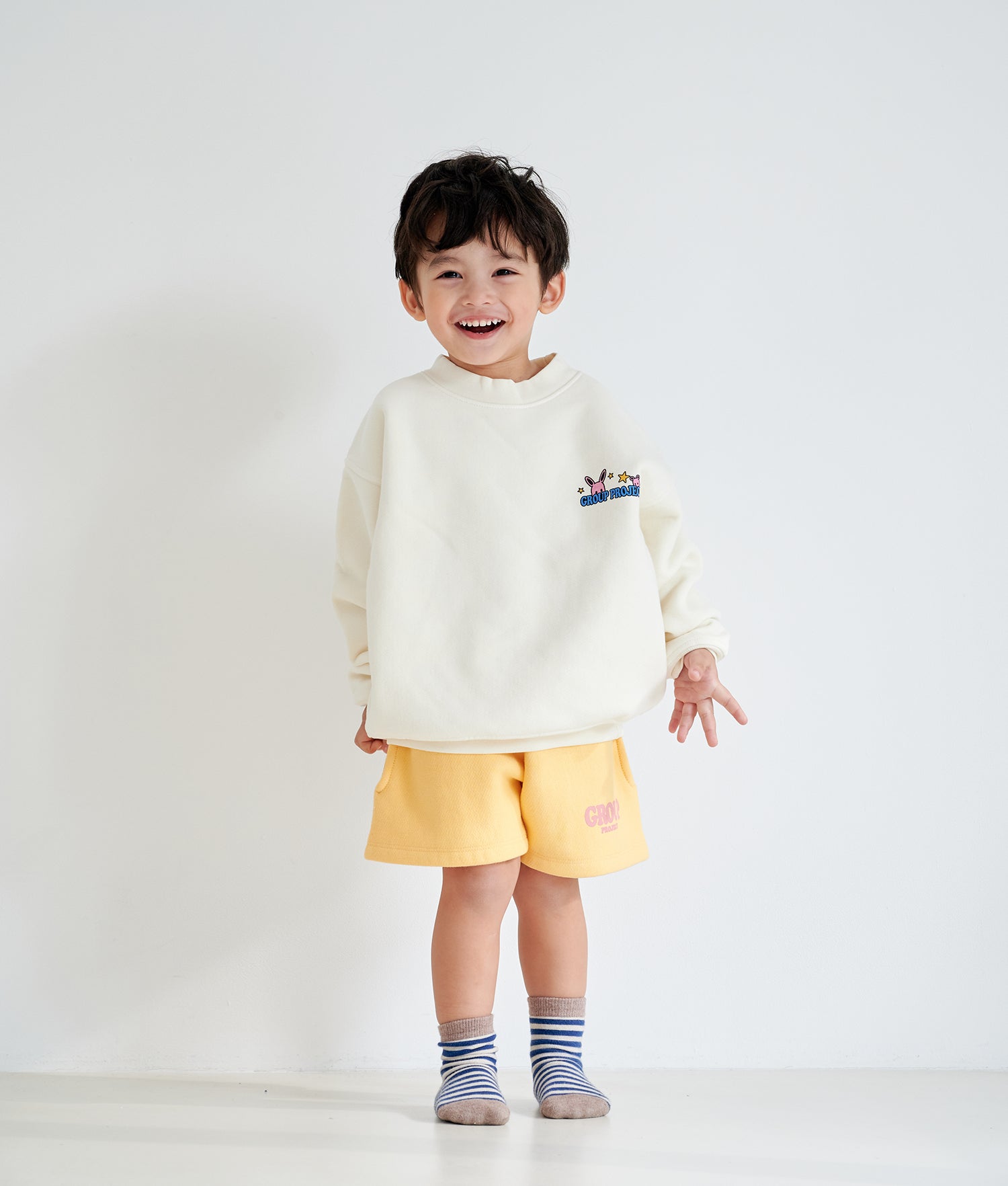 Model is 3 years old and wearing 4-5 YRS size for oversized look.