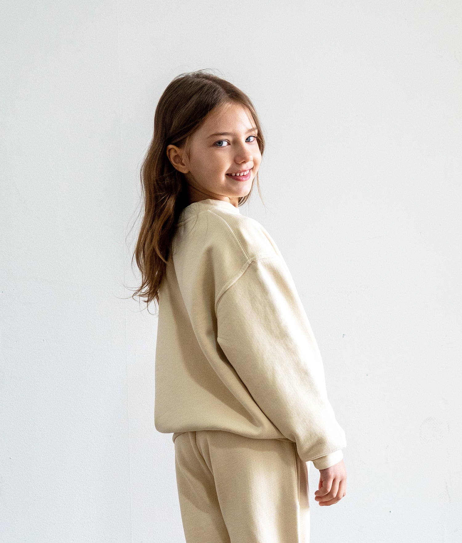 Our Heavy cozy Fleece is made of 100 Premium Combed Cotton and Garment dyed with Enzyme for the softest handfeel. Drop Shoulder with slightly oversize fit with Ribbed Cuff and Waistband.